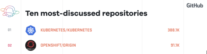 在 GitHub 的所有开源存储库中,没有比 kubernetes/kubernetes 收到更多的评论。 OpenShiftCNCF 认证的 Kubernetes 发行版 排名第二。